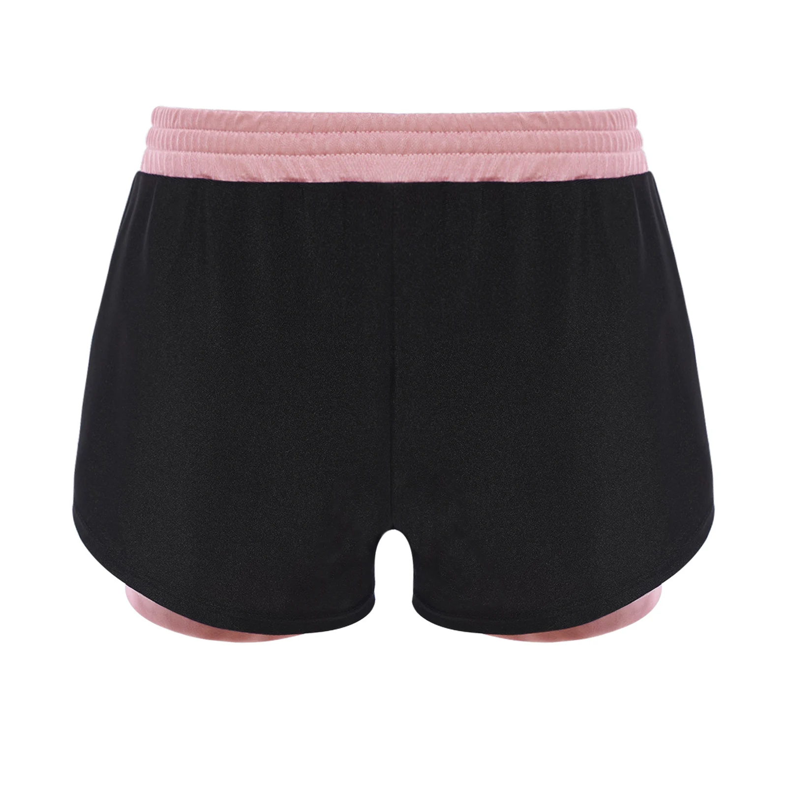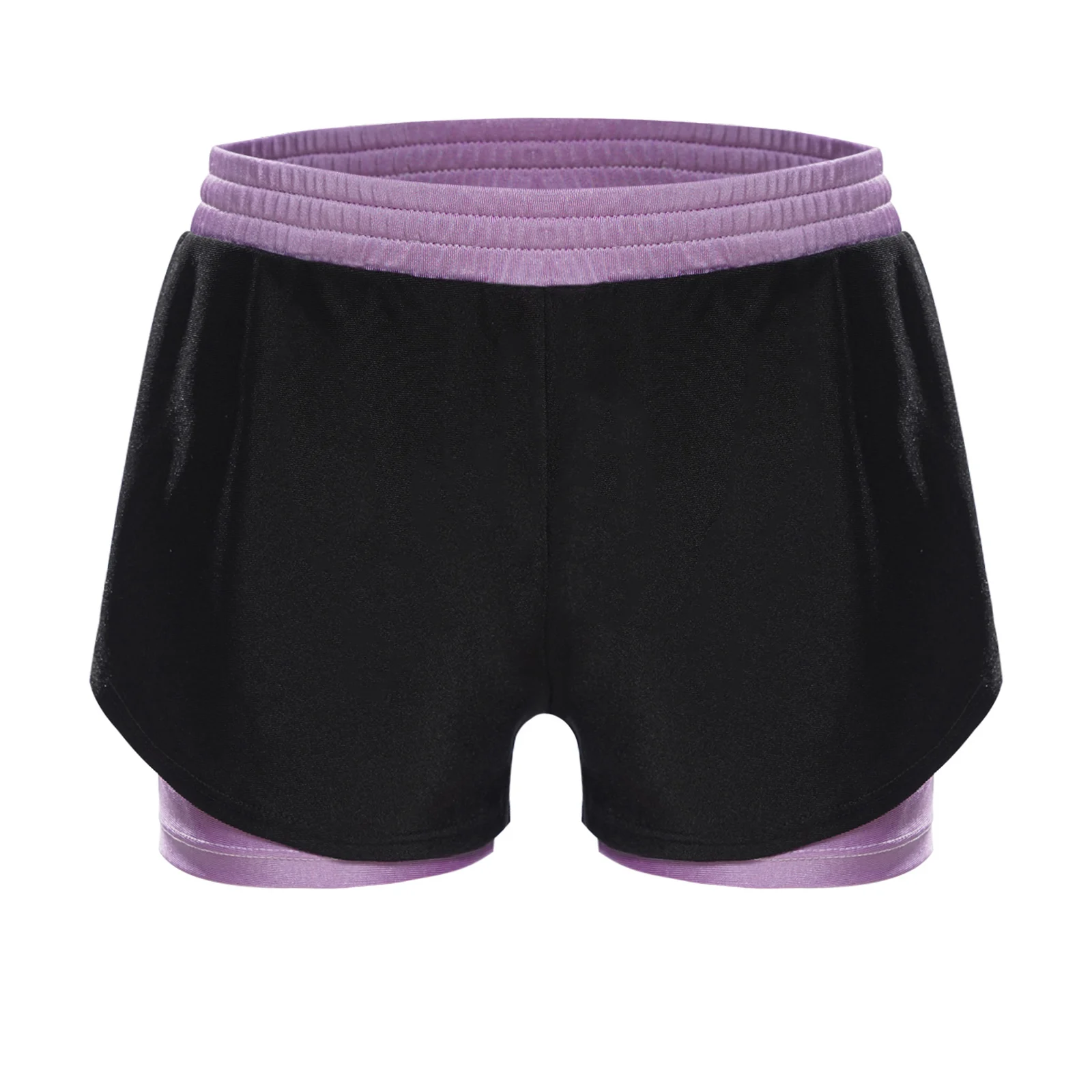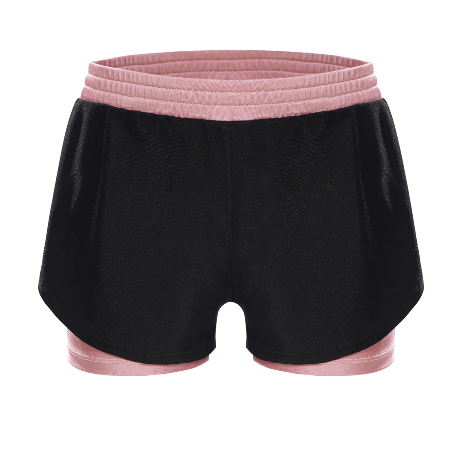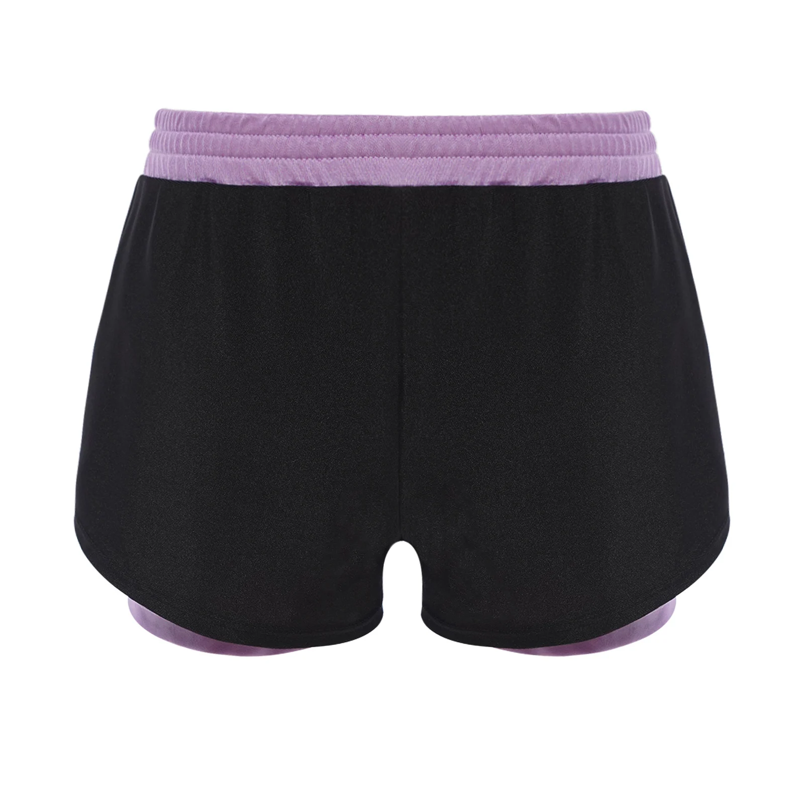 YUUMIN New Child Girls Sports Shorts Elastic Waistband Double-Layer Contrasting Shorts for Workout Exercise Yoga Running Cycling