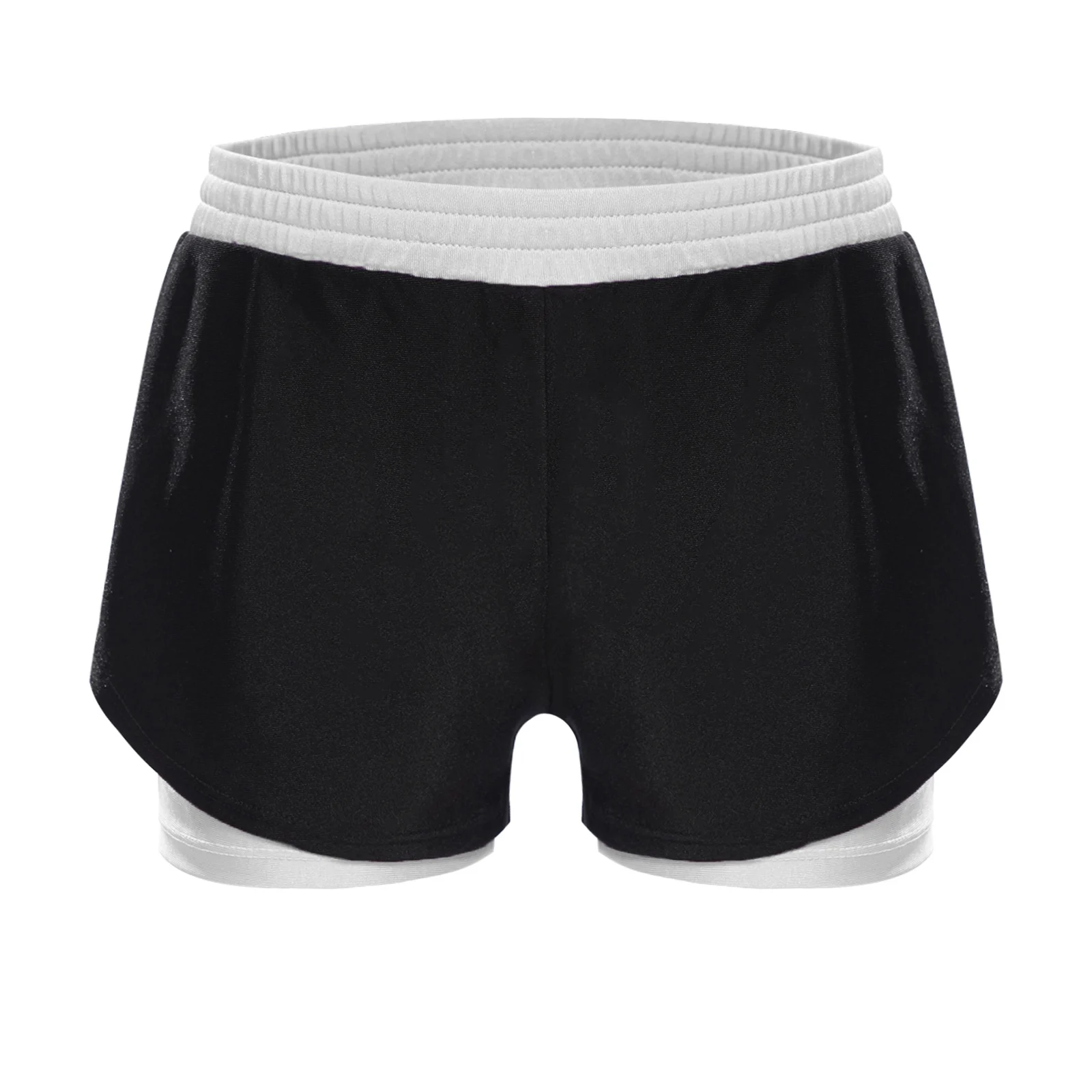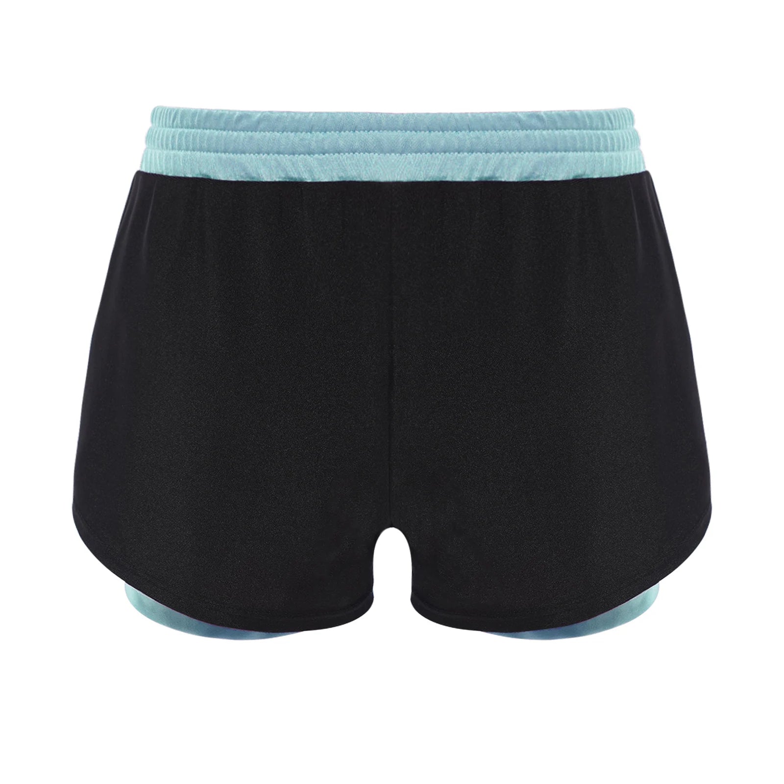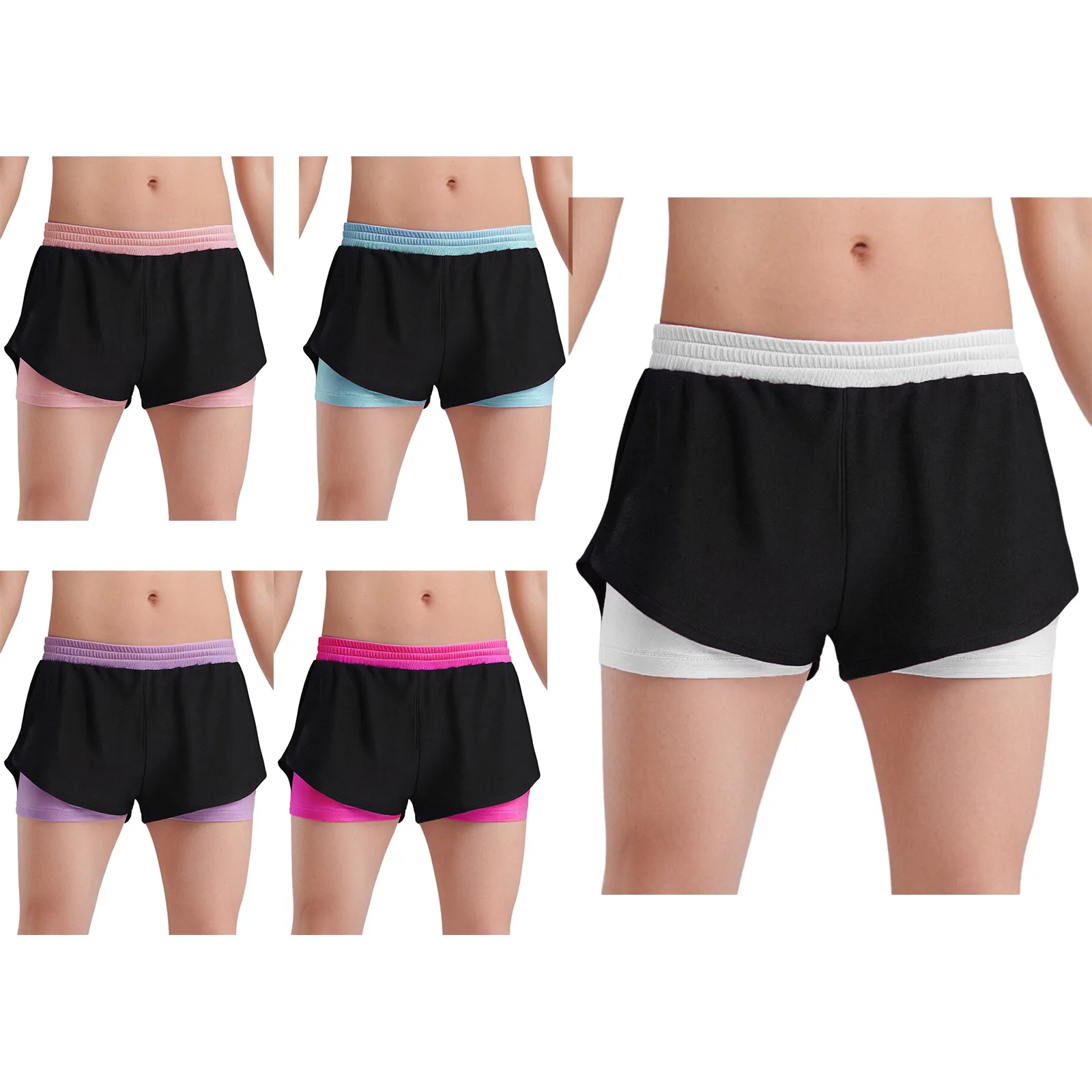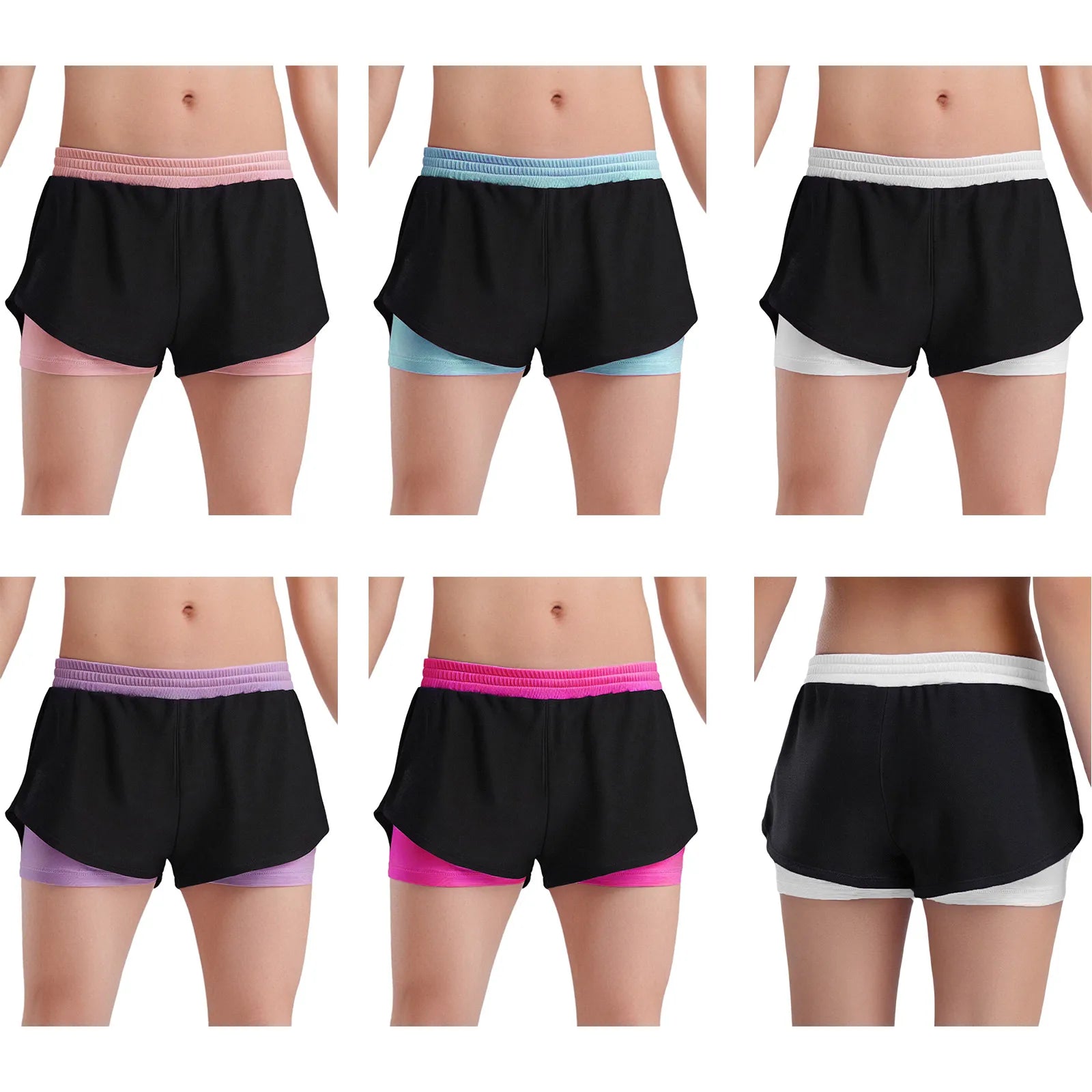 YUUMIN New Child Girls Sports Shorts Elastic Waistband Double-Layer Contrasting Shorts for Workout Exercise Yoga Running Cycling