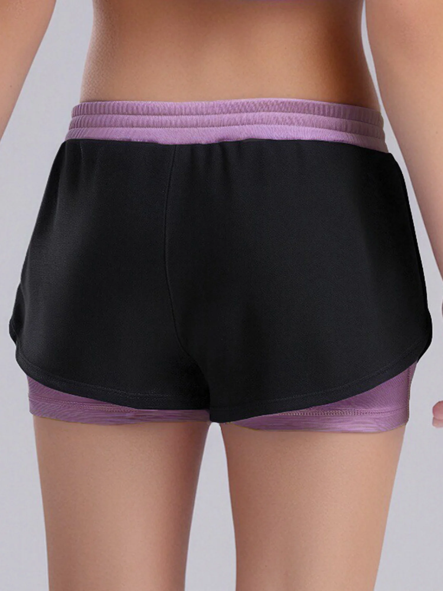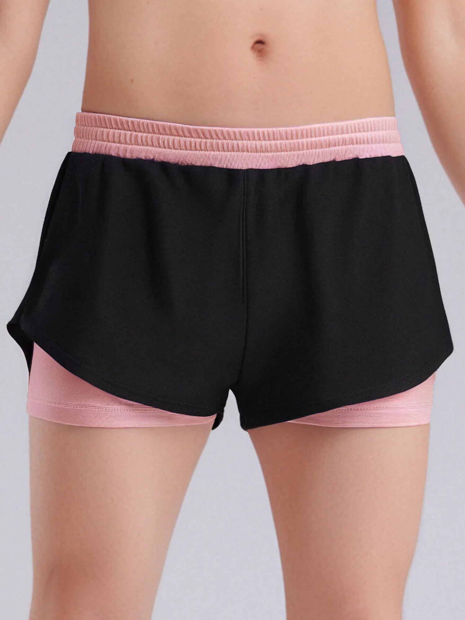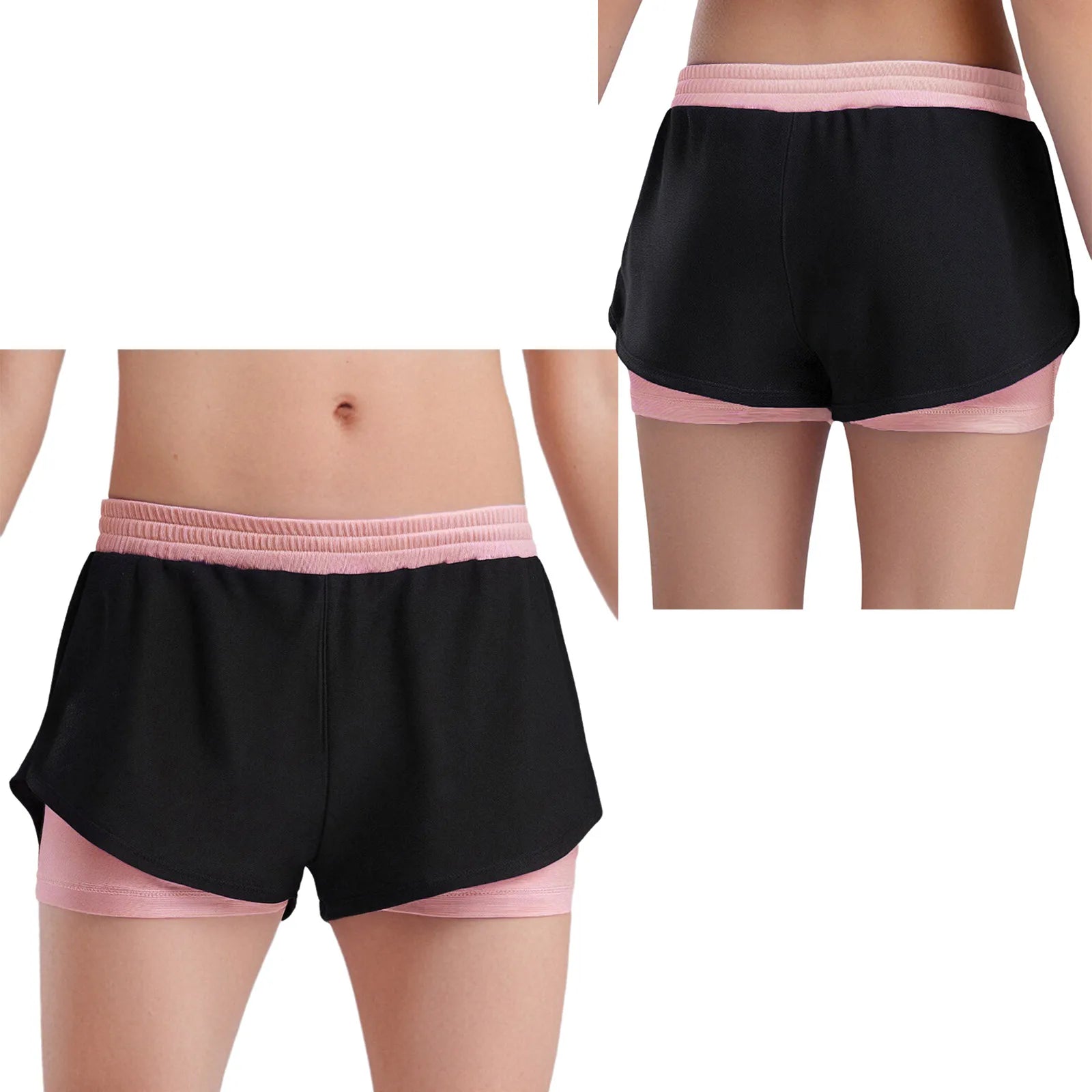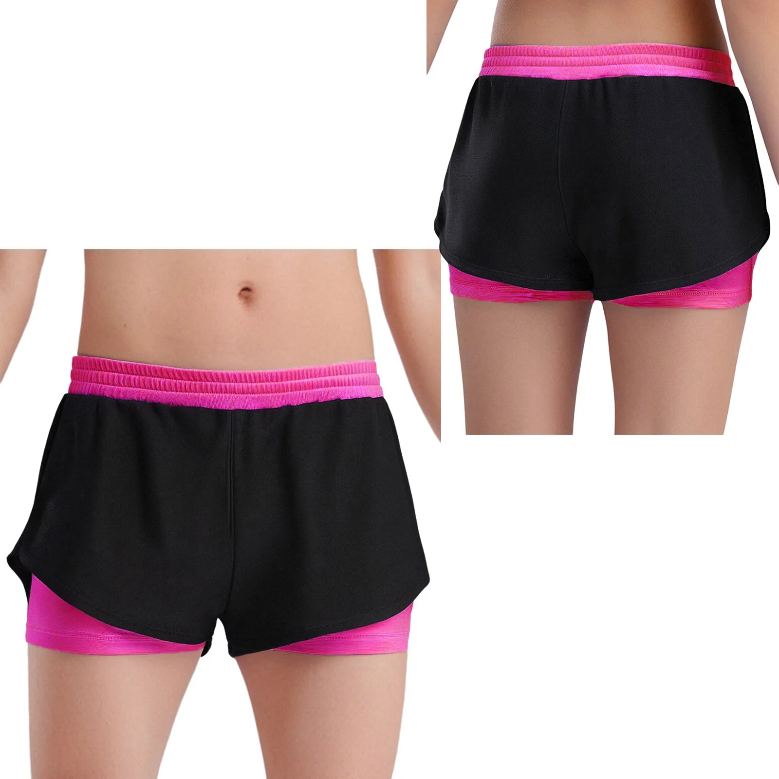 YUUMIN New Child Girls Sports Shorts Elastic Waistband Double-Layer Contrasting Shorts for Workout Exercise Yoga Running Cycling